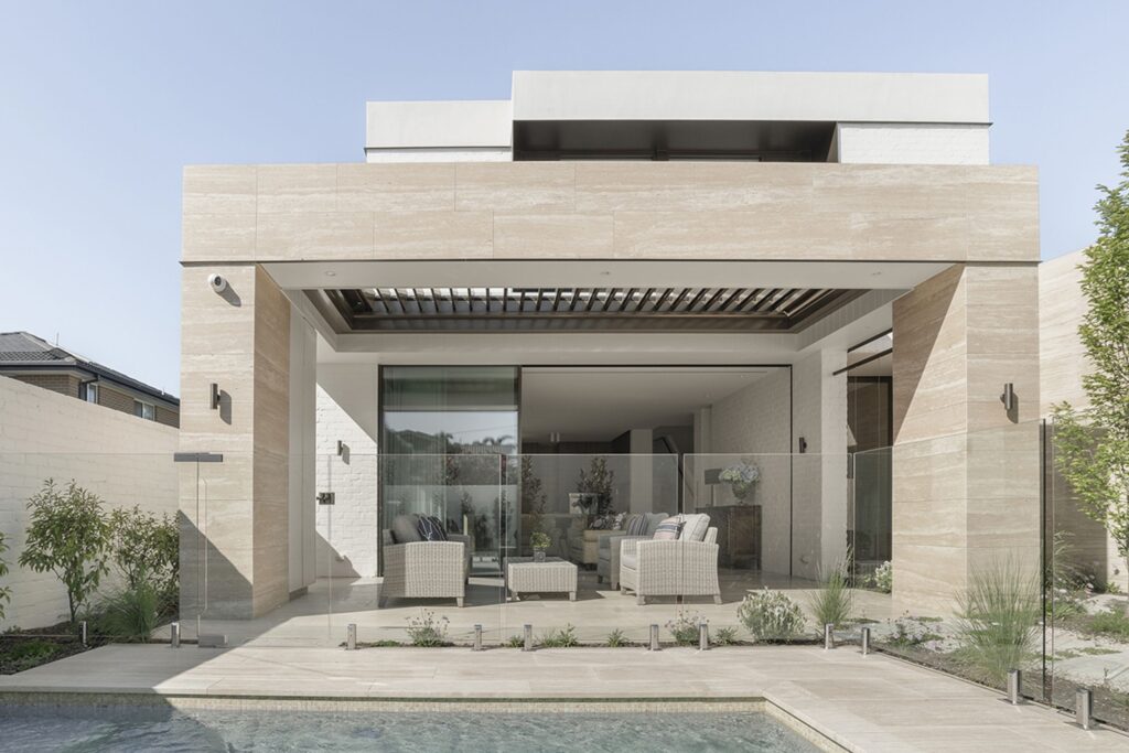Séria Coverlam Travertino spája krásu tradičného materiálu s technologickými výhodami moderných keramických dosiek. Výsledkom je riešenie, ktoré ponúka autentický vzhľad prírodného travertínu, no zároveň spĺňa požiadavky súčasnej architektúry – najmä pri fasádnych aplikáciách.